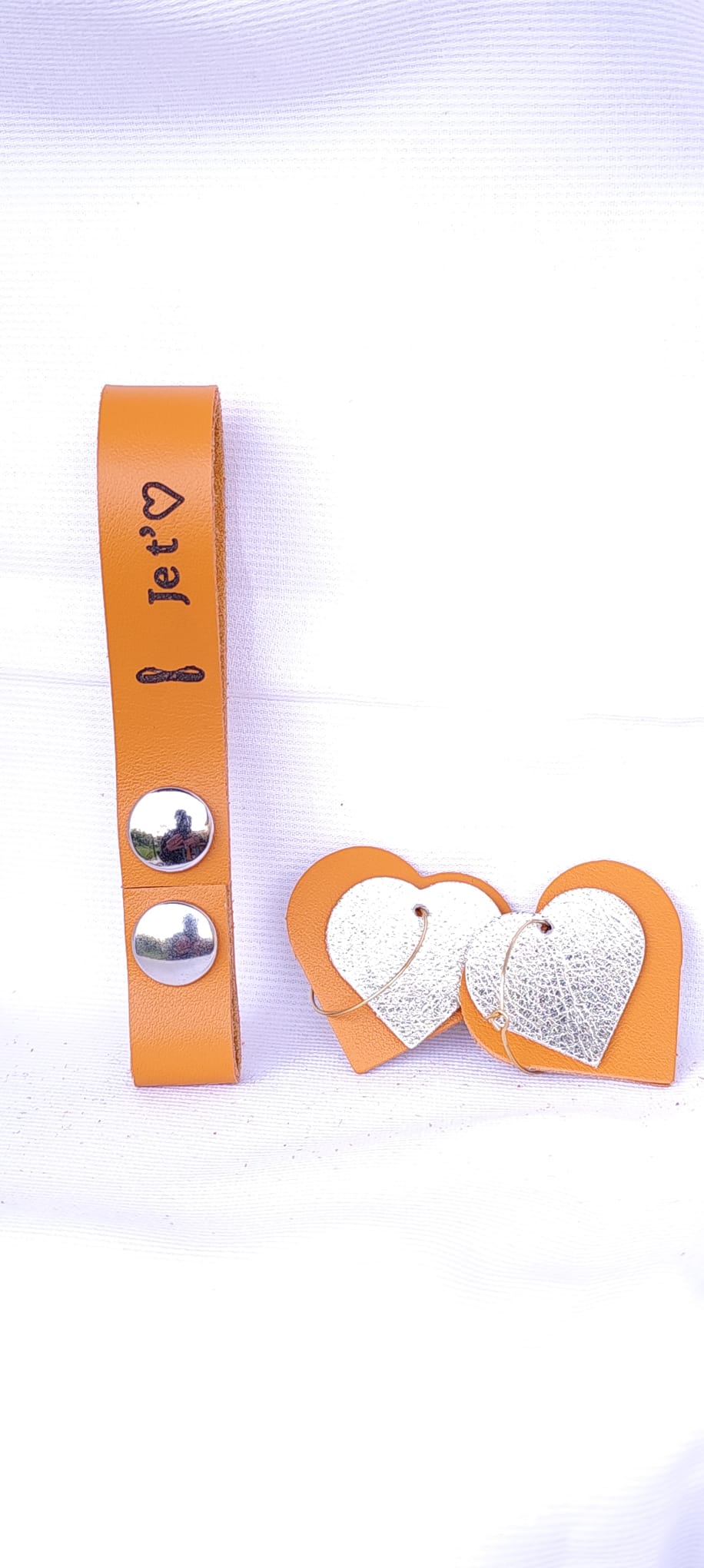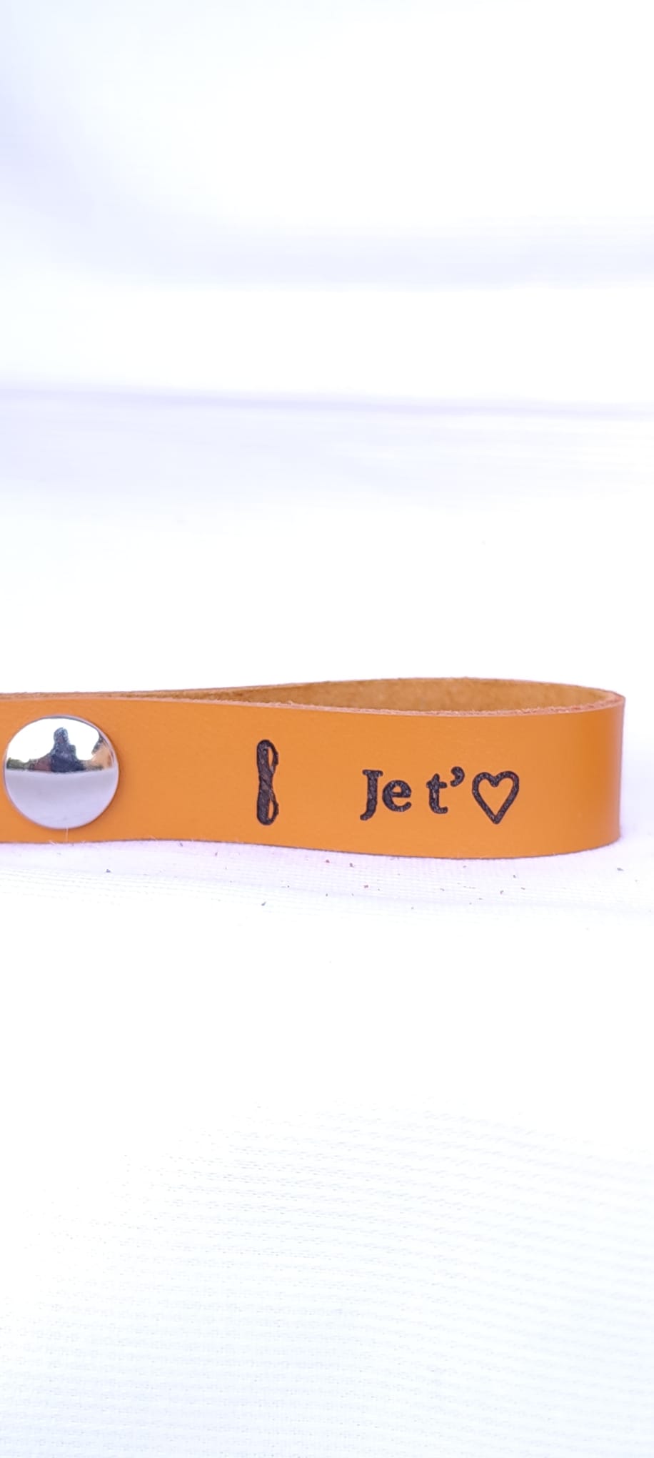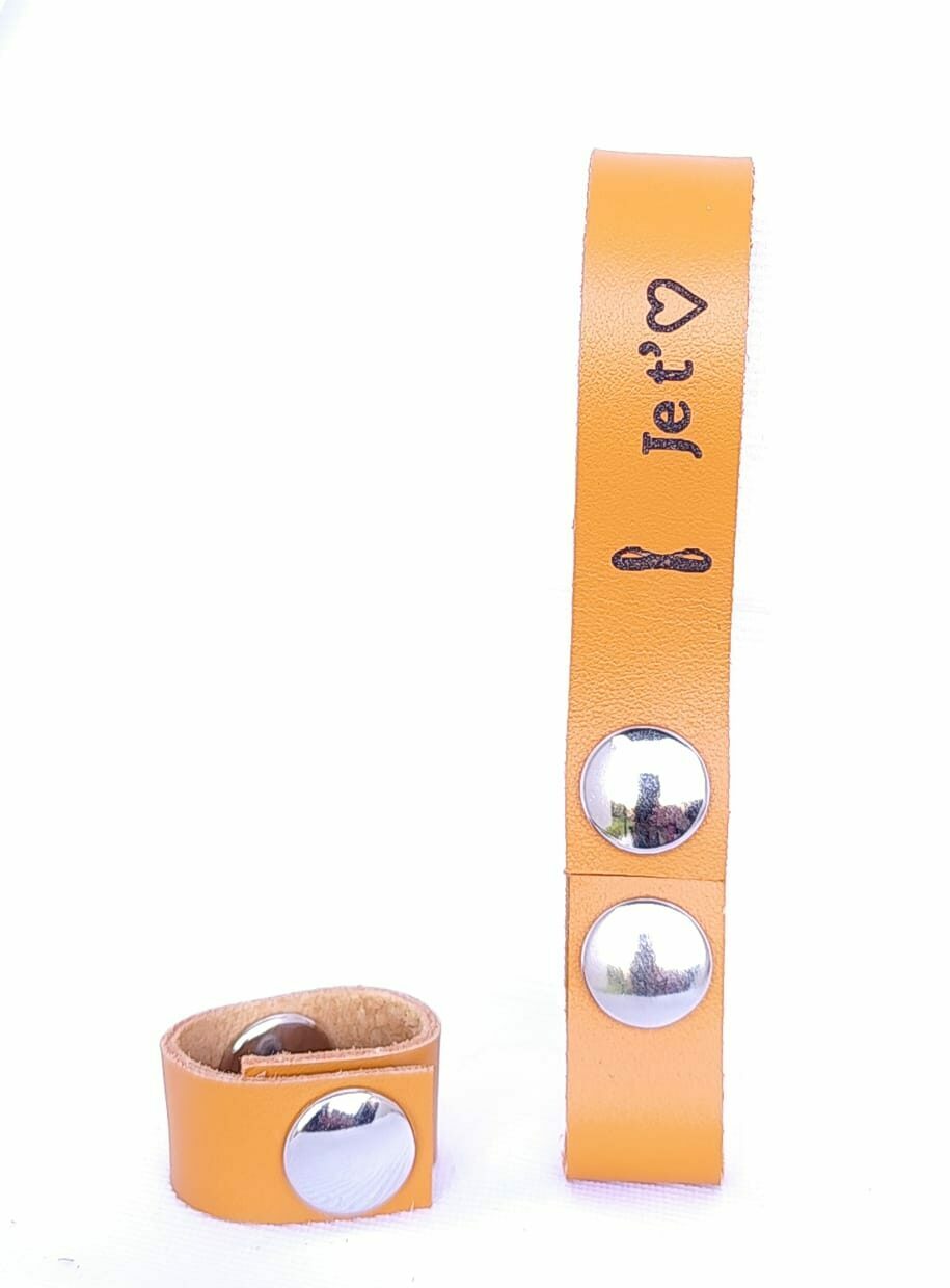Attache porte-clés Cuir Jaune Safran Je t’aime