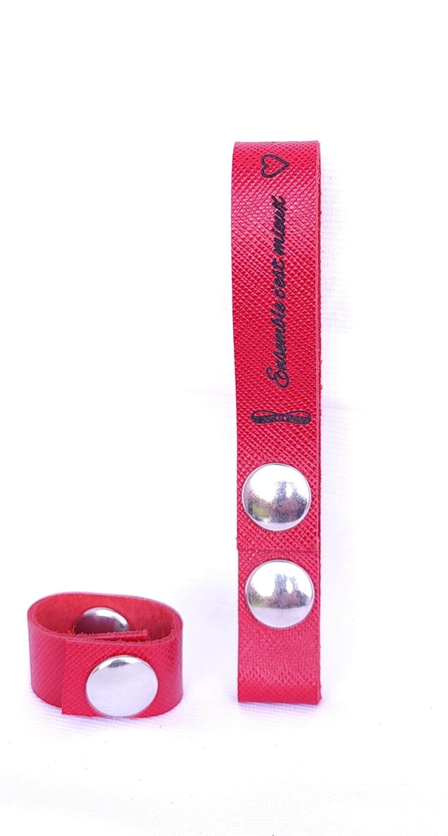 Attache porte-clés Cuir Rouge « Ensemble c’est mieux »