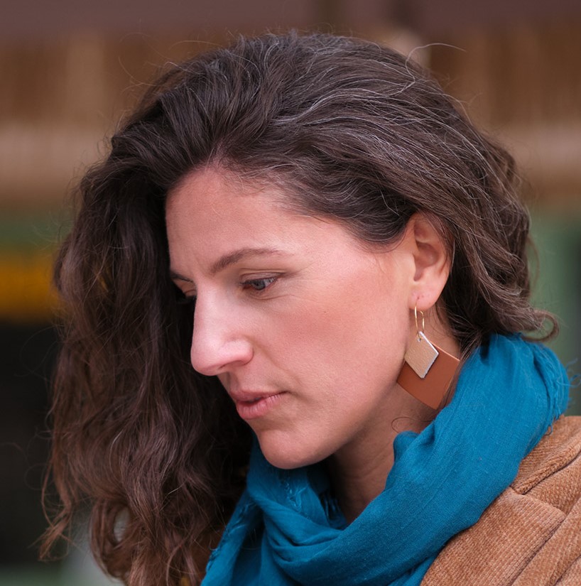Boucles d’oreilles Cuir Carrées MArron Doré